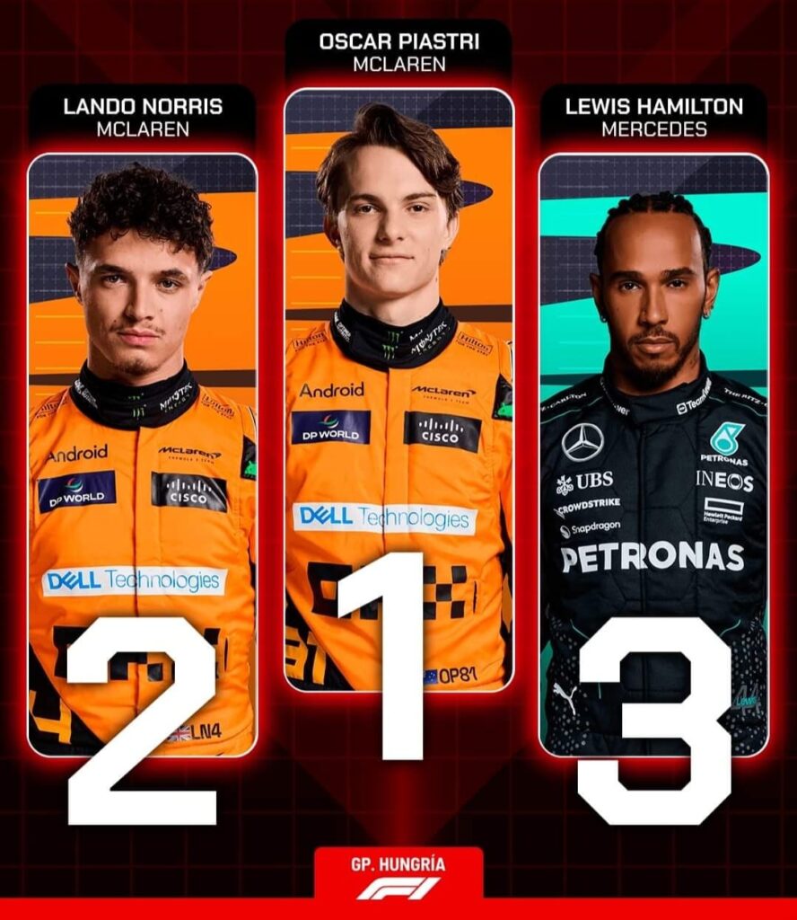 Oscar Piastri (McLaren) logró su primera victoria en la Fórmula 1 al ganar el Gran Premio de Hungría el 21 de julio de 2024, aprovechando la lucha entre su compañero Lando Norris y Max Verstappen (Red Bull).