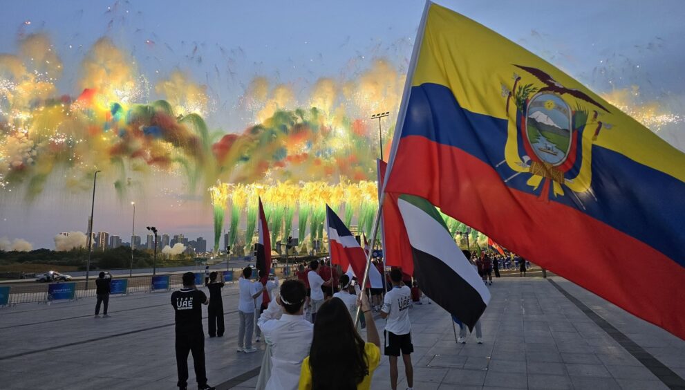 Con entusiasmo y orgullo, la delegación ecuatoriana dijo presente en la apertura de la XII edición de los Juegos Mundiales, que se desarrollan en Chengdú, China. Trece atletas, distribuidos en cuatro disciplinas, conforman el equipo que defenderá los colores del país en este importante evento. El Centro Internacional de Convenciones de Tianfú se transformó en un escenario vibrante para recibir a más de cien naciones, en una jornada marcada por la música, la luz y el fervor deportivo.