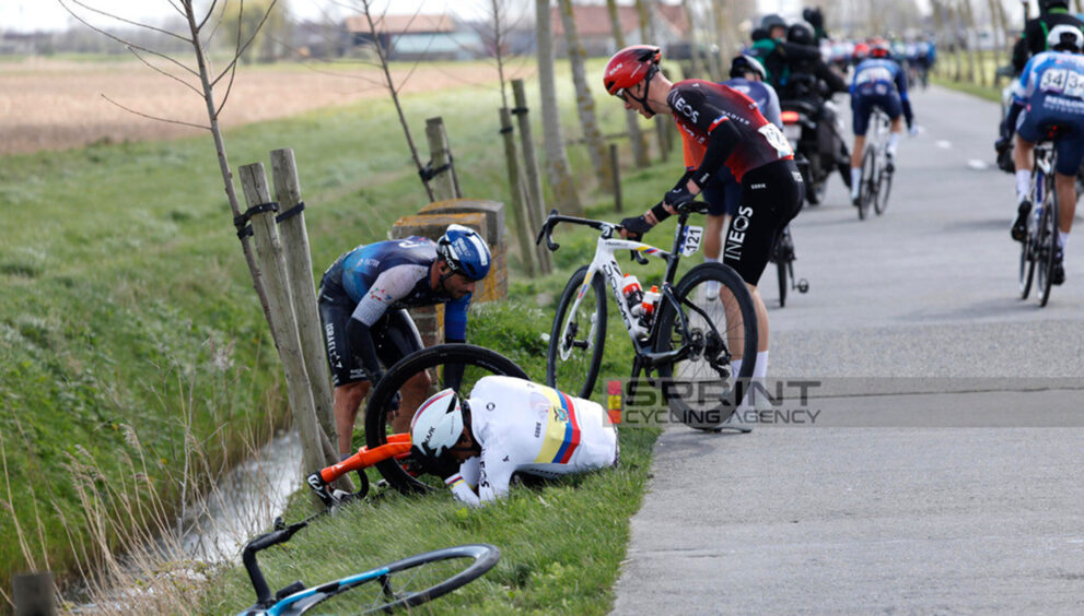A 149 kilómetros del final de la clásica belga, Narváez sufrió una caída junto a su compañero de equipo Connor Swift y Jake Stewart del Israel Premier Tech, lo que generó incertidumbre sobre su estado entre los seguidores del ciclismo.